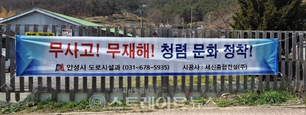 또 ‘무사고! 무재해! 청렴 문화 정착!’과 ‘청렴한 공사현장!’ 등의 청렴 슬로건이 담긴 플래카드를 도로건설현장에 게시하여, 현장 근무자들 또한 청렴문화 확산에 동참하는 계기를 마련했다.
