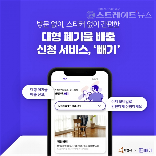 [스트레이트뉴스 송은경 기자] 경기도 화성시가 6월 1일부터 모바일로 대형 폐기물을 간편하게 배출할 수 있는 ‘빼기’서비스를 개시한다.