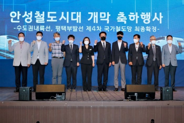 이날 행사에는 김보라 안성시장과 이규민 국회의원을 비롯한 도의원, 시의원 및 기관·사회단체장과 안성 국가철도 범시민유치위원회 조천호 집행위원장 등이 함께해 안성의 철도 유치를 축하했다.
