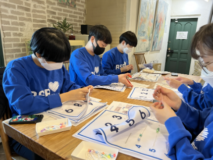 bhc치킨은 ‘해바라기 봉사단’ 5기 2조가 지난 6일 경기도 양주시 광적면에 위치한 사회적기업 담심포와 함께 시각장애아를 위한 점자촉각책을 제작했다.