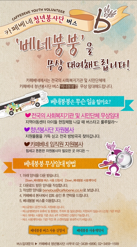 | 카페베네 청년봉사단 버스 ‘베네붕붕’ 무상임대 포스터 |