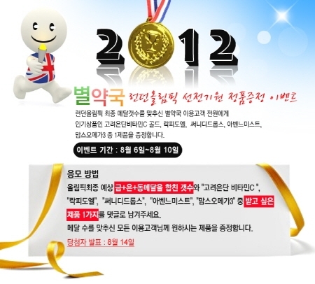 온라인 드럭스토어 스타팜(별약국)이 런던올림픽에 출전한 우리 선수들의 선전을 기원하기 위해 오는 10일까지 ‘정품 증정 이벤트’를 펼친다.