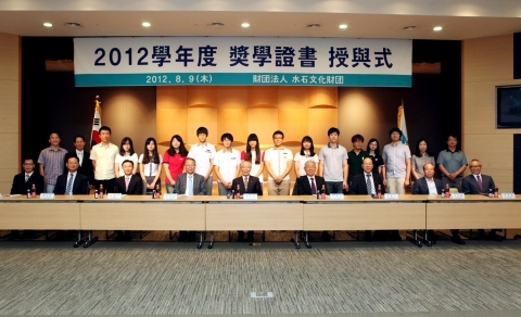 수석문화재단(이사장 강신호)은 8월 9일(목) 동아제약 본사 대강당에서 ‘2012학년도 장학증서 수여식’을 개최하였다고 밝혔다.
