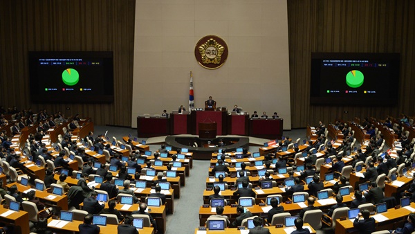 국회는 이날 오전 3시25분께 본회의를 열어 정부가 제출한 내년도 예산안 총 지출 규모 400조7000억원을 1504억원 순삭감한 400조 5495억원으로, 총 수입 규모 413조5000억원에서 2000억원 감액된 414조3000억원을 확정했다.