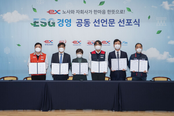 한국도로공사가 29일 환경·사회·윤리경영에 대한 공기업의 사회적 책임 이행을 위해 노동조합, 자회사가 참여한 'ESG(환경 사회 지배구조) 경영 선포식'을 열었다.