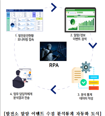 남부발전은 현장 실무자가 로봇 프로세스 자동화 적용하고 확산할 수 있도록 지난 1월부터 ‘현장주도 자동화 추진 워크숍’을 진행하고 있으며 ‘발전소 알람 자동분류 및 통계자료 작성’ 등 현장업무 효율화를 위한 15개 시범과제를 발굴하고 자동화를 지속 추진할 계획이다.