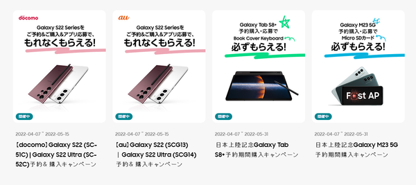 삼성전자는 신형 스마트폰 갤럭시S22 시리즈는 기존처럼 NTT도코모와 au(KDDI) 등 통신사를 통해서 판매한다. 니혼게이자이신문은 "삼성전자가 제품군을 한층 더 충실히 만들어 반전을 노리고 있다"고 분석했다. IDC재팬에 따르면 삼성전자의 지난해 4분기 일본 스마트폰 시장 점유율은 10%에 미치지 못해 5위 안에 들지 못했다. 미국 애플이 아이폰을 앞세워 50% 이상을 점유하고 있다.