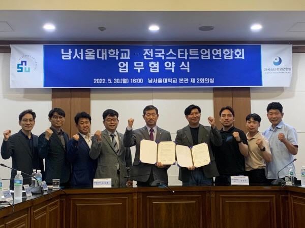 전국스타트업연합회(SAK)가 지난달 30일 남서울대학교와 천안 지역 스타트업 육성 및 지원을 위한 업무협약을 체결했다.