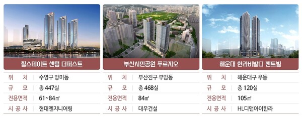 마지막으로 ‘해운대 한라비발디 펜트빌’은 해운대구 우동 일대에 지하 5층~지상 35층 2개 동, 총 120실 규모로 들어서는 주거형 오피스텔이다. 앞선 2개 단지와는 다르게 전 실이 전용 105㎡의 중대형 평형으로 구성되는 것이 특징이다.