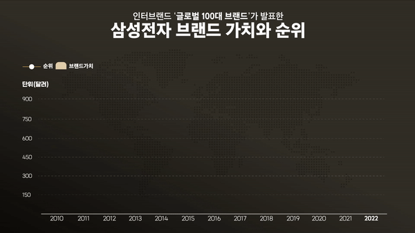 삼성전자는 2012년 9위로 도약하며 처음 10위권에 진입한 이후 2017년 6위, 2020년 5위 등 브랜드 가치를 계속 높여왔다. 애플, 마이크로소프트(MS), 아마존, 구글 등 미국 기업이 주로 포진한 상위 10대 브랜드에 포함된 유일한 한국 기업이기도 하다.