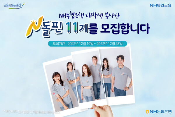 NH농협은행은 금융교육 기부활동 및 농업·농촌의 가치 홍보에 앞장설 대학생 봉사단 11기를 이달 28일까지 공개 모집한다고 18일 밝혔다.