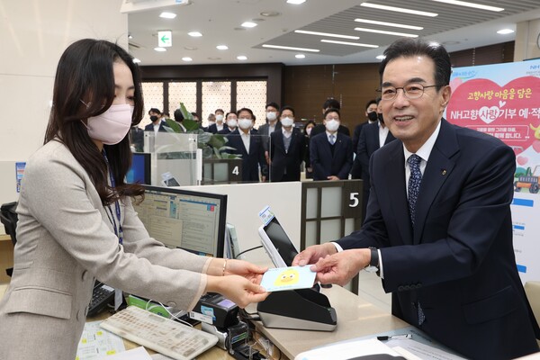 농협중앙회는 이성희 회장이 농업·농촌의 숙원사항인 고향사랑기부제가 올해부터 시행됨에 따라 2일, 서울 중구 농협은행 본점영업부를 찾아 고향사랑 기부금을 납부하고, NH고향사랑기부 금융상품을 가입했다고 당일 밝혔다.