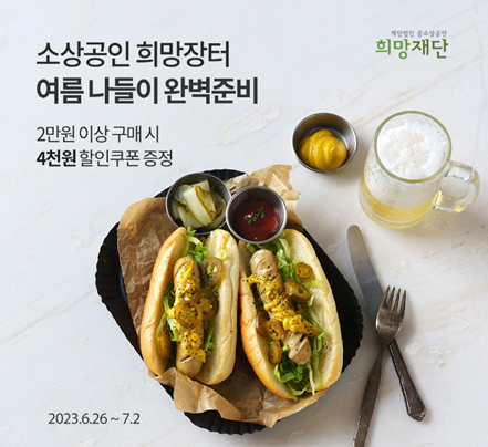오아시스마켓은 올해 ‘희망장터’의 첫 시작으로 오는 26일부터 7월 2일까지 ‘여름 나들이 완벽준비’ 기획전을 개최한다. 나들이에서 즐기기 좋은 약 600개 상품을 최대 30% 할인 판매하고, 중복 사용 가능한 4000원 할인 쿠폰을 제공한다. 단, 해당 쿠폰은 2만원 이상 결제 시 사용할 수 있다.