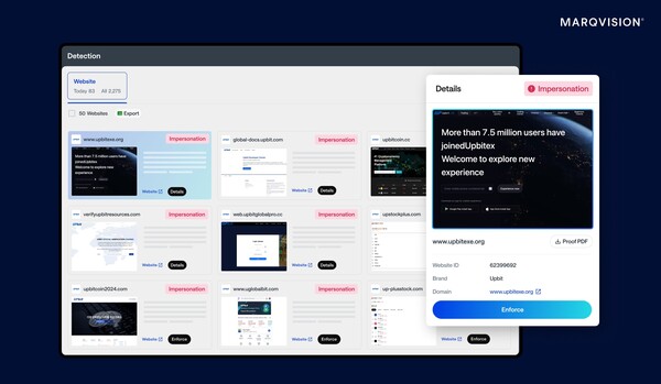 블록체인 및 핀테크 전문기업 두나무가 운영중인 국내 대표 가상 자산 거래소 업비트의 경우, 도메인 주소를 교묘하게 차용해 거래를 유도하는 가짜 홈페이지를 구축하거나 임직원을 사칭한 투자 리딩방 등 금융사기 사례가 발생함에 따라 이용자에게 각별한 주의를 당부해왔다. 업비트는 최근 마크비전과의 협업을 통해 이와 같은 사칭 사례들을 탐지하고 신속하게 제거해 안전한 투자자 보호 환경 조성에 힘쓰고 있다.