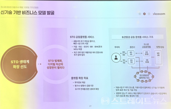 코스콤은 토큰증권(STO) 공동플랫폼 사업을 적극 추진하겠다고 밝혔다. 코스콤은 지난달 29일 대표 직속 조직으로 ‘STO 사업 추진 태스크포스(TF)’를 신설하기도 했다.