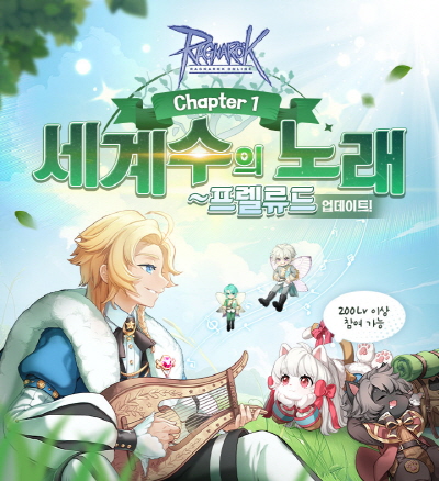 먼저 라그나로크 온라인 전서버에서 새로운 이야기와 모험을 다룬 챕터1 ‘세계수의 노래 ~프렐류드’를 오픈했다. 신규 챕터는 세계수의 안배에 따라 새로운 모험의 여정이 시작되는 이야기를 담았다. 챕터1은 200레벨 이상부터 입장 가능하며 다양한 메인 퀘스트, 메모리얼 던전인 재현된 다크 위스퍼, 신규 아이템 뿌리 금화 등을 만날 수 있다.
