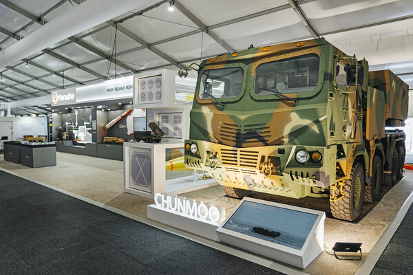 한화에어로스페이스는 폴란드군의 호평을 받고 있는 천무 다연장 로켓의 실물을 전시한다. 적의 장사정포 사정권 밖에서 아군의 피해없이 핵심 표적을 정밀 타격할 수 있는 차세대 화력 장비다.