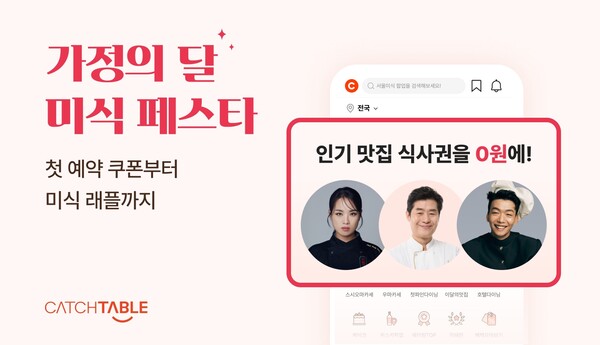 ‘가정의 달 미식 페스타’는 가족 단위의 예약과 모임이 활발해지며 외식 수요가 증가하는 5월을 맞아 기획됐다. 평소 쉽게 접하기 어려운 인기 레스토랑의 식사를 무료로 경험할 수 있는 이벤트부터 캐치테이블에서 최초로 진행하는 할인 쿠폰 행사까지 기존보다 풍성한 혜택을 선보이며 외식의 즐거움에 특별한 추억까지 더할 예정이다.