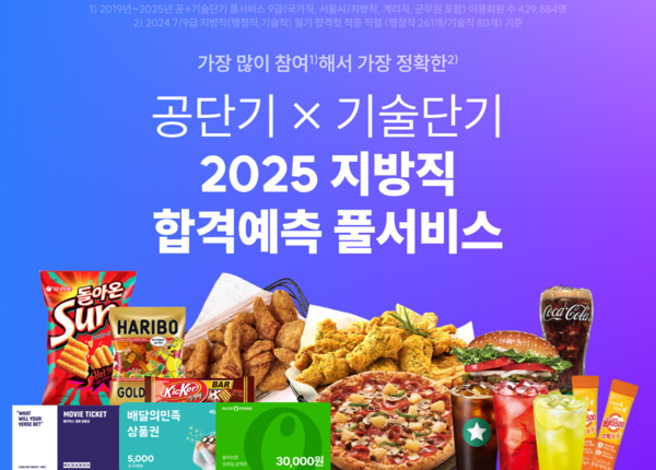 에스티유니타스의 공무원 시험 전문 브랜드 ‘공단기’와 ‘기술단기’가 지방직 수험생을 위해 필기시험 합격 분석 서비스인 ‘합격예측 풀서비스’를 운영하며 사전예약을 진행한다고 밝혔다.