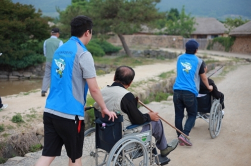 | 장애 어르신들을 이동보조하는 사회복무요원 |