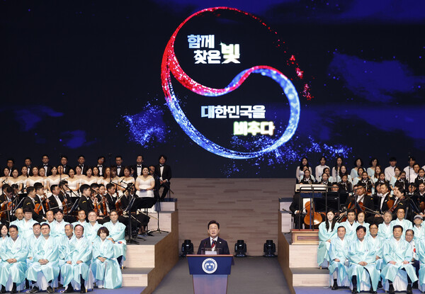 이 대통령은 "위대한 국민의 저력으로 세계를 선도하는 대한민국, 평화와 번영이 가득한 나라, 국민주권의 빛이 꺼지지 않는 나라를 만들자"며 경축사를 마무리했다.