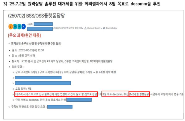 실제 7월 19일 KISA가 KT에 해킹 의혹을 통보한 직후, 구로·광화문 고객센터의 시범운용도 돌연 중단됐다. KT는 7월 21일 KISA에 "침해사고 흔적 없음"을 통보했지만, KISA는 문제 서버가 원격상담시스템 서버라는 사실을 뒤늦게 인지하고 8월 12일 관련 자료를 요청했다. 그러나 KT는 "서버를 폐기해 제출할 수 없다"고 답변했다. 해당 서버는 가상 서버로 폐기 시 복구나 포렌식 자체가 불가능해 현재 조사가 큰 난항을 겪고 있다.