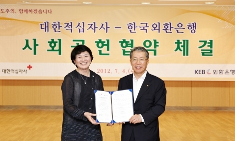 외환은행(은행장 윤용로/www.keb.co.kr)은 지난 4일 서울 중구 남산동3가 대한적십자사 본사에서 ‘사회공헌 협약식’을 체결하고 ‘제1회 국제적십자사연맹 모의총회’ 개최를 위한 기부금도 함께 전달했다고 5일 밝혔다.