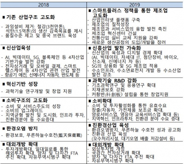 보고서에 따르면 중국은 2019년 양회를 통해 산업정책 기조에서 4차 산업혁명을 강조했다는 점에 주목했다.