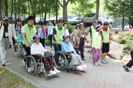 지난 5월 9일 강남구에 위치한 논현노인종합복지관 노인요양센터 어르신 17명, 사회복무요원 10명이 함께 인근에 위치한 양재시민의 숲 나들이를 다녀왔다. 사회복무요원들은 휠체어 이동보조 및 직접 준비한 레크레이션 등을 통해 어르신들에게 화창한 봄나들이를 선사하였다.