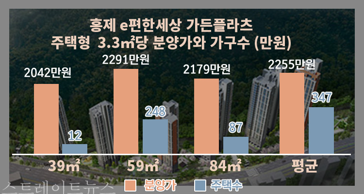 [스트레이트뉴스=한승수 기자] 대림산업이 서대문구 홍은1재건축구역에서 분양 중인 '홍제 e편한세상 가든플라츠'가 3.3㎡당 평균 2,255만원에 분양중이다.