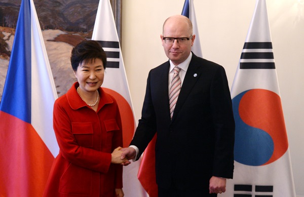 체코를 공식 방문중인 박근혜 대통령은 3일(현지시간) 리히텐슈타인궁에서 보후슬라프 소보트카(Bohuslav Sobotka) 체코 총리와 정상회담을 가졌다.