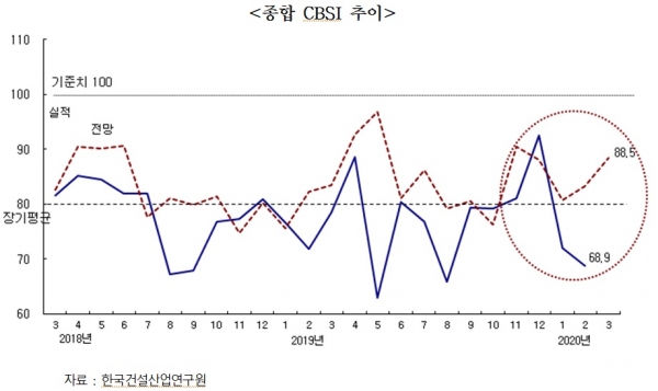 박철한 부연구위원은 “지수가 20p 가까이 상승할 것으로 전망한 것은, 봄철 발주가 증가하는 계절적 영향과 함께 침체된 건설경기 부양책의 일환으로 건설 공사 물량이 증가할 것이라는 기대가 함께 반영된 것으로 판단된다"며 "하지만 코로나19 확산이 장기화될 경우 실제 지수는 그보다 낮을 가능성이 크다”고 말했다.