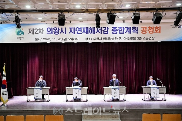 경기도 의왕시(시장 김상돈)는 지난 20일 평생학습관에서 관계 전문가와 지역주민 등 40여 명이 참석한 가운데 ‘제2차 의왕시 자연재해저감 종합계획(안)’에 대한 주민공청회를 개최하고 시민의 의견을 들었다.
