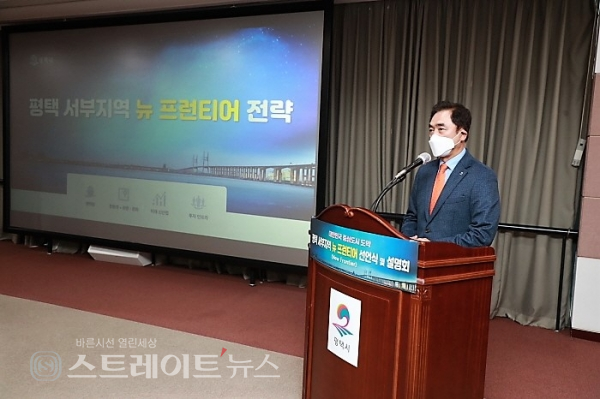 경기도 평택시는 지난 15일 평택항 홍보관에서 정장선 시장과 국·도·시의원, 지역주민들이 참석한 가운데 평택 서부지역을 새로운 대한민국 중심도시로 조성하는 비전을 담은 서부지역 뉴 프런티어 선언식 및 설명회를 개최했다.