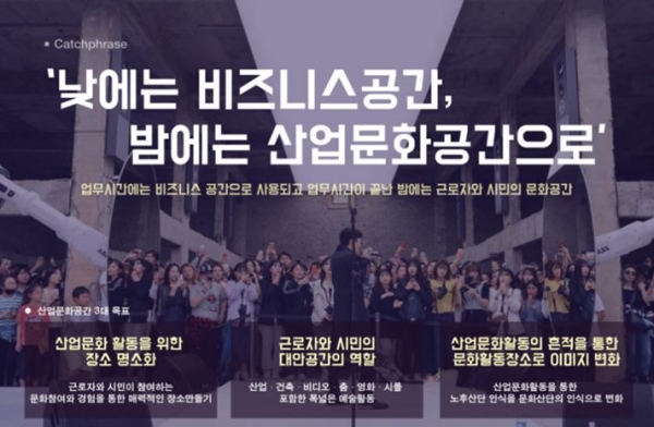 인천시에서는 여기에 산업단지를 생산기지로서의 역할 뿐만 아니라, 지역주민과 근로자 더 나아가 모든 시민들이 소비와 여가, 문화를 함께 향유 할 수 있는 공간으로 조성하고자“인천 산단 산업문화공간 대개조 사업”을 추진하고 있다.