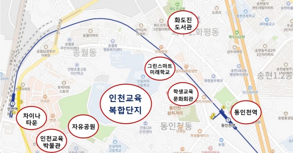 인천교육복합단지 조성에 적합한 장소로는 중구 동인천지역의 제물포고등학교 부지가 검토되고 있으며, 2026년 준공을 목표로 하겠다는 방침이다.